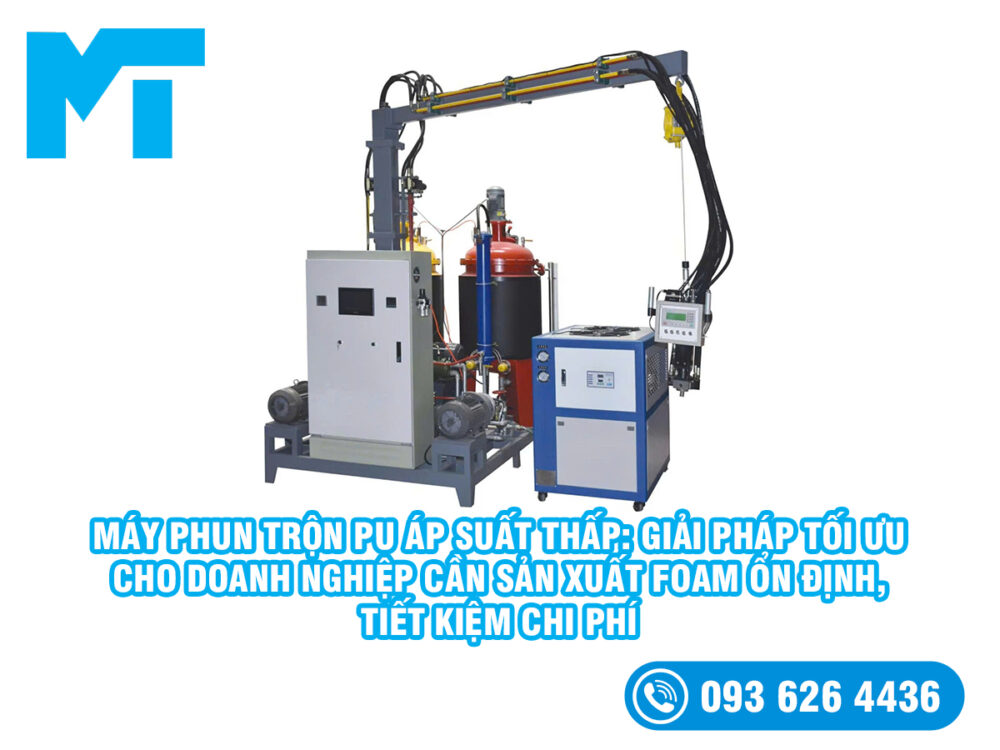 Ngoài ra, vì nhóm sản phẩm thấp áp của M&T còn có Máy phun trộn PU Foam cho tôn lợp và Máy trộn PU Foam Polyurethane, nên bài toán ứng dụng cũng có thể mở rộng sang các doanh nghiệp làm mái, tôn, panel, vật liệu cách nhiệt hoặc cần giải pháp foam cho công trình. Nhóm sản phẩm tổng thể của website còn bao gồm Máy Phun Foam PU, Khuôn Đổ PU và Nguyên Liệu Foam PU Polyurethane, cho thấy người dùng có thể tiếp cận máy áp suất thấp như một phần trong hệ giải pháp lớn hơn, chứ không chỉ là thiết bị đơn lẻ.