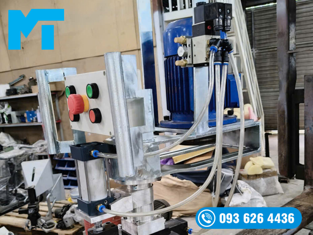 Thứ ba là bài toán về kiểm soát nhiệt độ vật liệu. M&T cho biết máy có thùng chứa cấu trúc 3 lớp, thành bằng thép chống gỉ, có lớp bảo ôn bên ngoài và lớp trong dùng để gia nhiệt. Vai trò của chi tiết này là giúp ổn định nhiệt độ và tiết kiệm năng lượng. Trong sản xuất PU, nhiệt độ nguyên liệu ảnh hưởng rõ đến phản ứng và chất lượng foam, nên đây không phải chi tiết phụ mà là một lợi thế kỹ thuật thực sự.